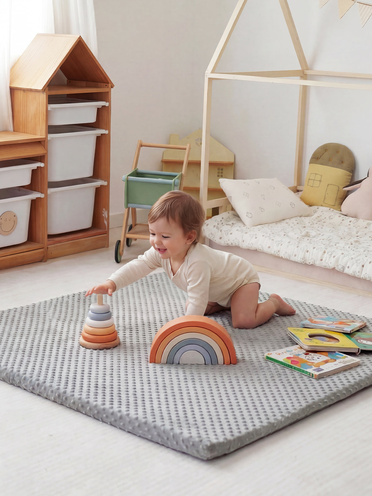 Loved this mat! Great quality and thickness. So soft for my little one to roll and do tummy time. Spread the toys out so baby can attempt to reach toys. Highly recommend.