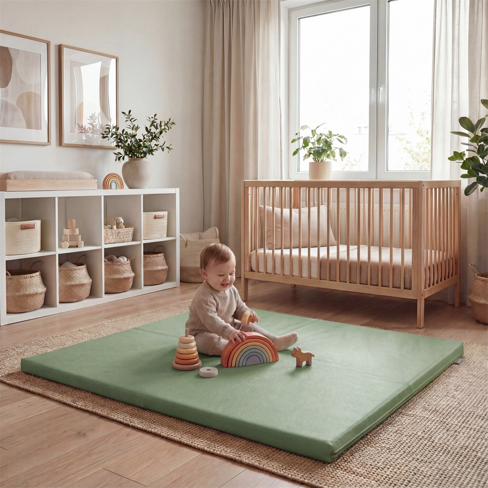 【Removable & Durable Design】The waterproof cover is not only easy to clean but also durable for everyday use as a baby rug or play mat. Its vegan leather material is gentle on skin and ideal for all seasons, offering comfort year-round.