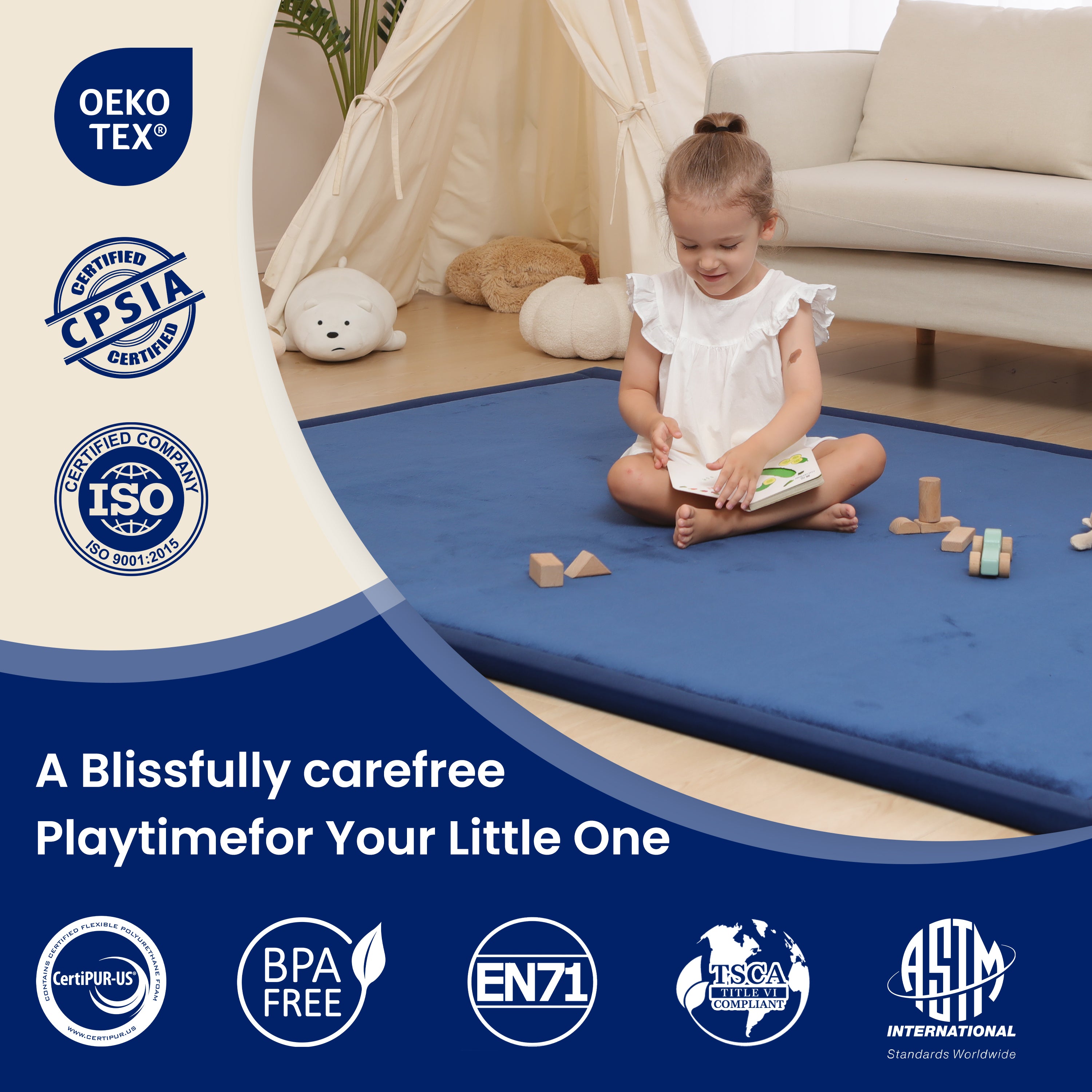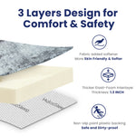 - Non-Toxic, Baby-Safe Materials: Filled with high-quality, non-toxic slow-rebound memory foam, the mat is tested to meet CPSIA and ASTM standards, helping reduce the risk of harmful chemical exposure in your home.